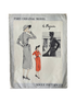 A one-piece dress designed by Paquin. Has three-piece skirt with front peg topped buttoned pockets that extends to the bodice. The bolero bodice has short or long kimonos sleeves and notched collar.